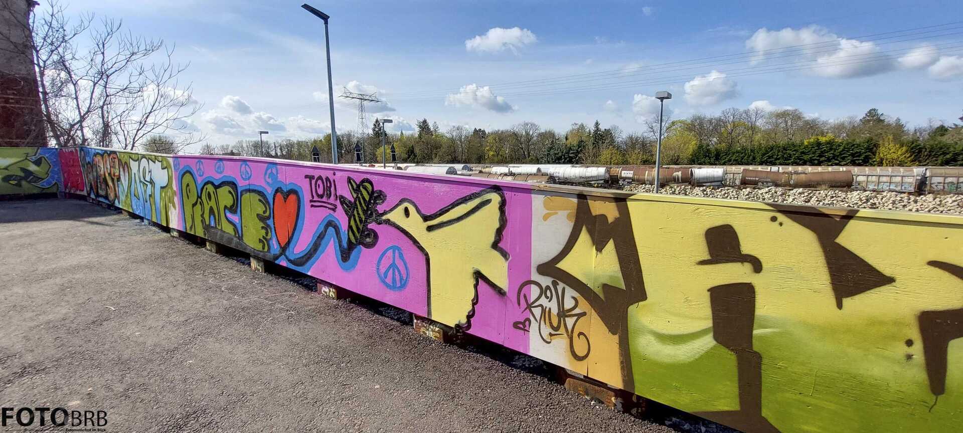 Auf circa 300 Quadratmeter Holzverkleidung welches die Übergangsbrücke am Altstadt-Bahnhof verkleidet, wurde am Wochenende vor Ostern durch Brandenburger Jugendlichen und Künstler der Stadt sowie zahlreichen weiteren Akteure Graffiti Kunst kunstvoll in Szene gesetzt.