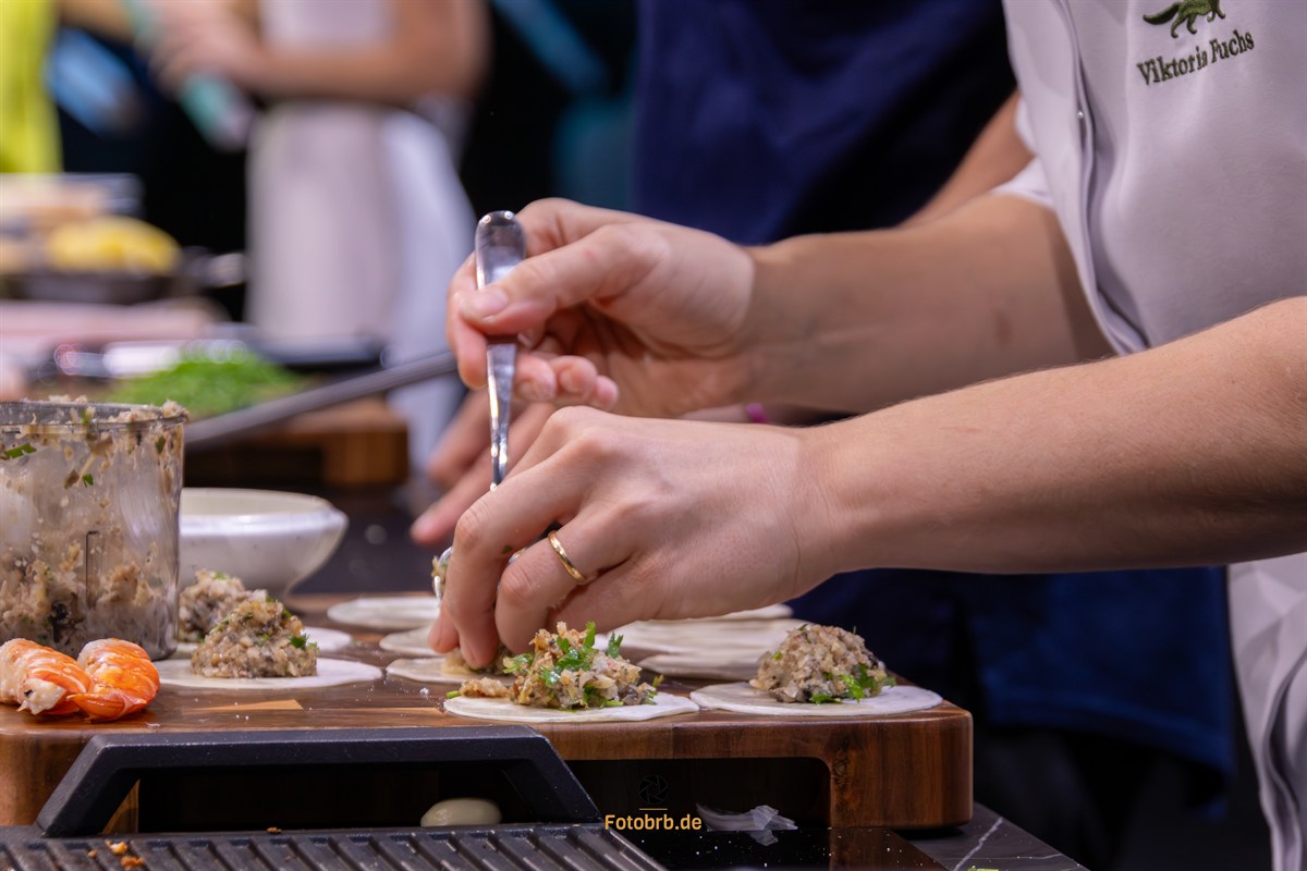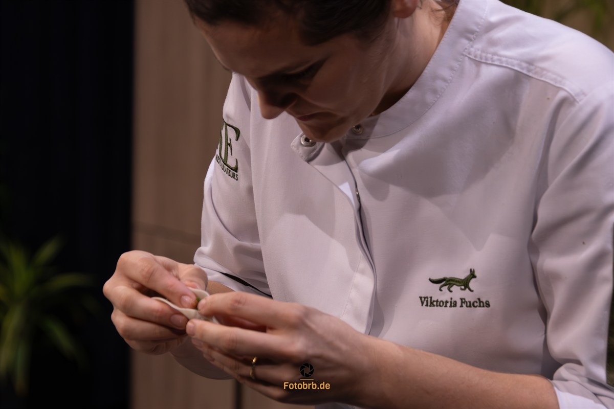 Innerhalb von 60 Minuten mussten die beiden Spitzenköche jeweils zwei Gerichte kreieren. Sterneköchin Viktoria Fuchs präsentierte gegrilltes Rinderfilet sowie hausgemachte Teigtaschen, gefüllt mit einer Farce aus Ingwer, Champignons, Lauch und Schalotten, dazu frische Pfifferlinge und Gambas. Alexander Kumptner setzte auf Zanderfilet mit Pfifferlingen, verfeinert mit einem Schuss Riesling. Nach einer Stunde entschied eine dreiköpfige Jury knapp zugunsten der im Schwarzwald lebenden Viktoria Fuchs.