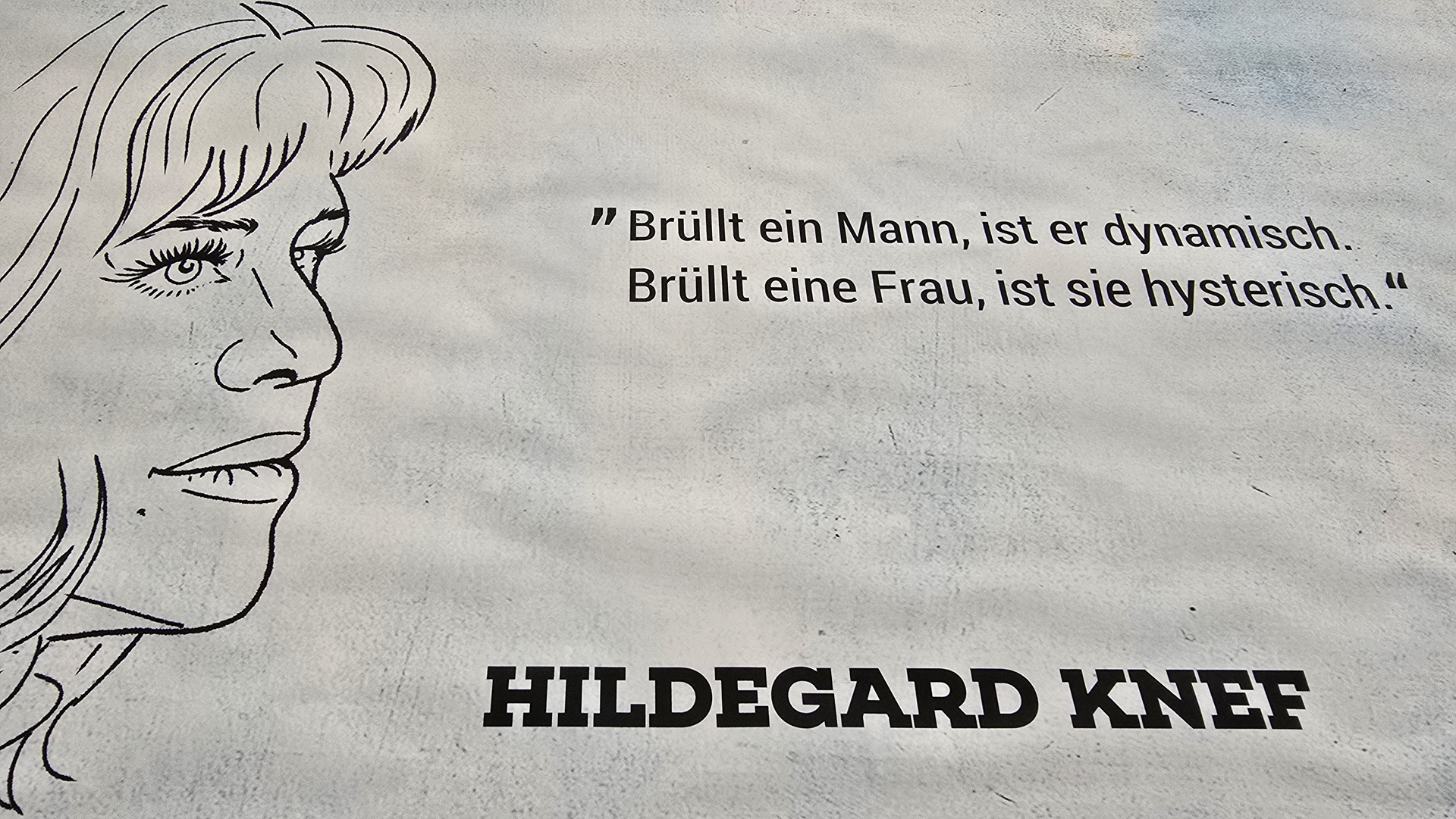 Ergänzt wird die Ausstellung durch Zitate bekannter Persönlichkeiten, die den Bildern zur Seite gestellt sind und aktuelle gesellschaftliche Zustände spiegeln oder kommentieren. Vertreten sind unter anderem Donald Trump, Martin Luther, Hildegard Knef und Badmómzjay. Die Zitate sollen irritieren, provozieren und zum Nachdenken anregen – ganz im Sinne des Ausstellungstitels.
